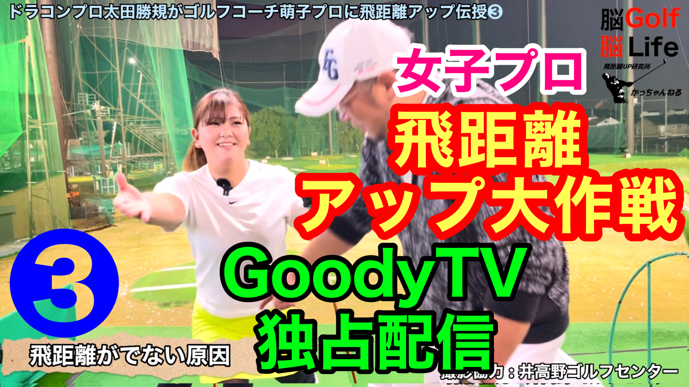 ❸ゴルフコーチ萌子プロに飛距離アップレッスン Goody!TV独占配信:公開中